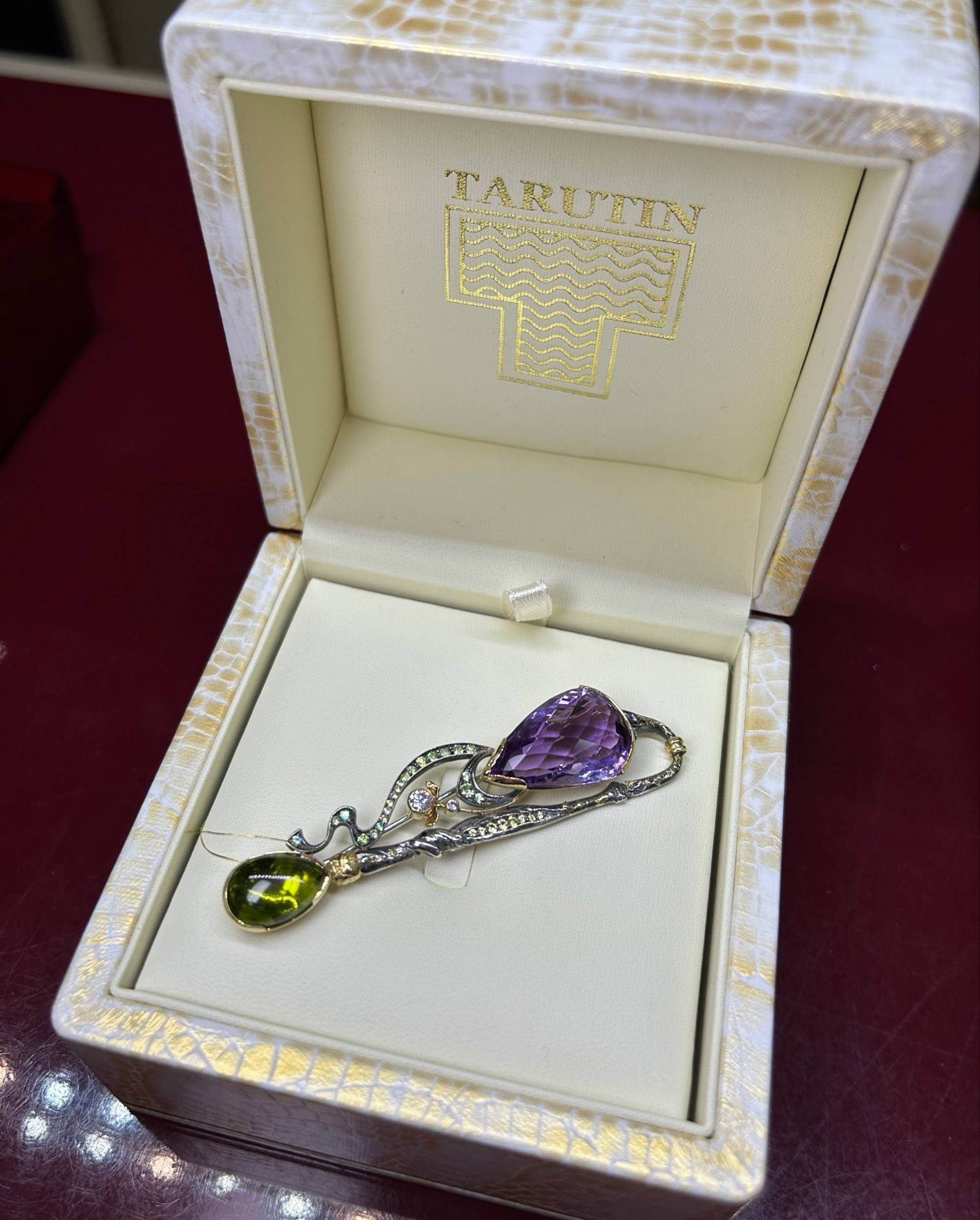Главная / Интернет-магазин / Изделия из золота / Броши / Брошь с аметистом Ваш браузер не поддерживает видео. Брошь с аметистом₽584.000 Золото 750 пробы 1 Аметист 26,43ct 1 Хризолит 8,97ct 22 Демантоида 0,47ct 9 Сапфиров желтых 0,28ct 5 Бр Кр57 0,26ct Серебро 925 пробы Посетить салон Заказать звонок Количество товара Брошь с аметистом Купить Категории: Без категории, Броши, Изделия из золота Метки: Аметист, Хризолит Product ID: 5009 Описание Описание Универсальный размер изделия ПОДРОБНЕЕ Сертификат на изделие ПОДРОБНЕЕ Гарантия на изделие ПОДРОБНЕЕ Доставка и оплата ПОДРОБНЕЕ Похожие товары Посмотреть детали Добавить в корзину Брошь с шпинелью и бриллиантами ₽143.000 Купить Посмотреть детали Серьги с аметистом и горячей эмалью «Гильоше» Купить Посмотреть детали Добавить в корзину Серьги с бирюзой ₽355.000 Купить