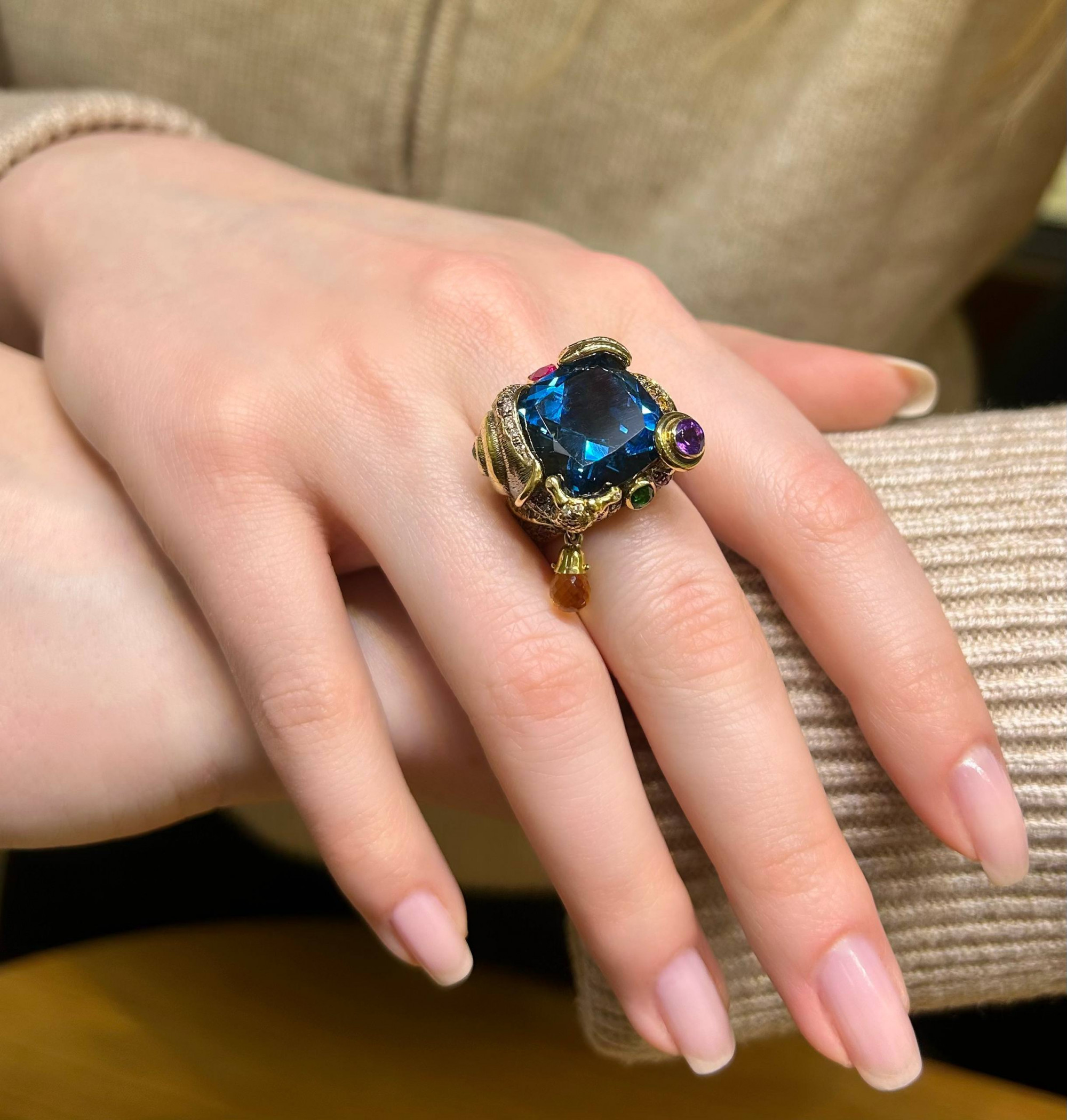 Главная / Интернет-магазин / Изделия из золота / Кольца / Кольцо с топазом «London blue» Ваш браузер не поддерживает видео. Кольцо с топазом «London blue» Топаз «London blue» 31,64ct 33 бриллианта Кр57 0,42 4/4 9 бриллиантов Кр57 «Коньяк» 0,09ct 10 Рубинов 2/2 0,78ct Сапфиры «multicolor» 0,39ct 1 Аметист 0,28ct 12 Хромдиопсидов 1,13ct 20 Родолитов 0,22ct 1 Цитрин 1,11сt Посетить салон Заказать звонок Артикул: 1301 Категории: Изделия из золота, Кольца Метка: Топаз Product ID: 3113 Описание Детали Описание Универсальный размер изделия ПОДРОБНЕЕ Сертификат на изделие ПОДРОБНЕЕ Гарантия на изделие ПОДРОБНЕЕ Доставка и оплата ПОДРОБНЕЕ Детали Вес 28,39 г Драгоценный камень Аметист, Бриллиант, Родолит, Рубин, Сапфир, Топаз, Хромдиопсид, Цитрин Материал Золото Похожие товары Посмотреть детали Кольцо с изумрудом Купить Посмотреть детали Добавить в корзину Кольцо с бриллиантами ₽142.000 Купить Посмотреть детали Кольцо с бриллиантами Купить