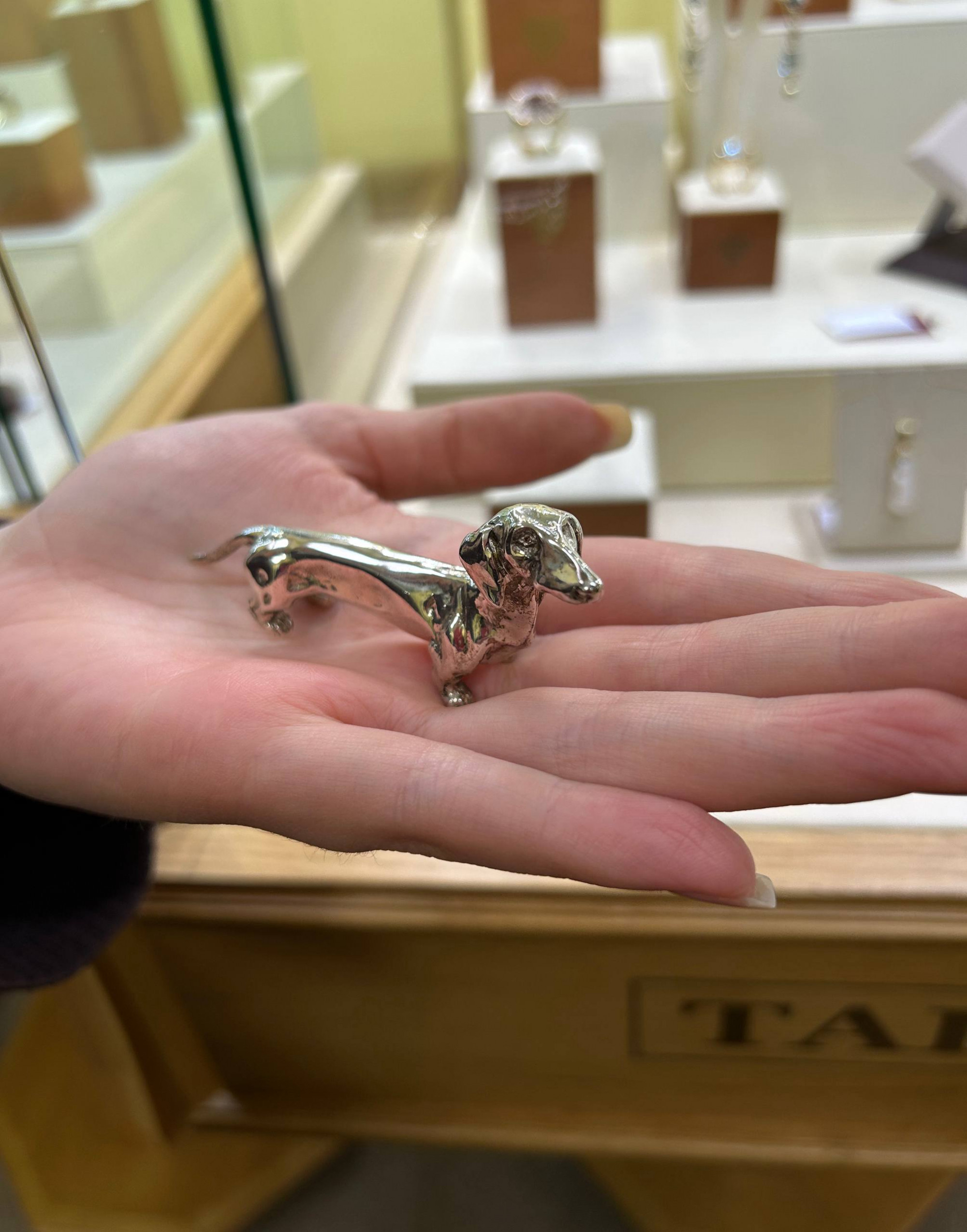 Главная / Интернет-магазин / Изделия из серебра / Сувенир «Такса» Сувенир «Такса»₽97.000 Серебро 925 пробы 2 Бриллианта 0,02ct Посетить салон Заказать звонок 1 в наличии Количество товара Сувенир "Такса" Купить Артикул: 7065 Категории: Изделия из серебра, Эксклюзивные подарки Product ID: 3699 Описание Детали Описание Универсальный размер изделия ПОДРОБНЕЕ Сертификат на изделие ПОДРОБНЕЕ Гарантия на изделие ПОДРОБНЕЕ Доставка и оплата ПОДРОБНЕЕ Детали Вес 82,99 г Материал Серебро Похожие товары Посмотреть детали Добавить в корзину Сувенир «Дружок» ₽340.000 Купить Посмотреть детали Брошь с жемчужиной, родолитом, хромдиопсидом, турмалином Купить
